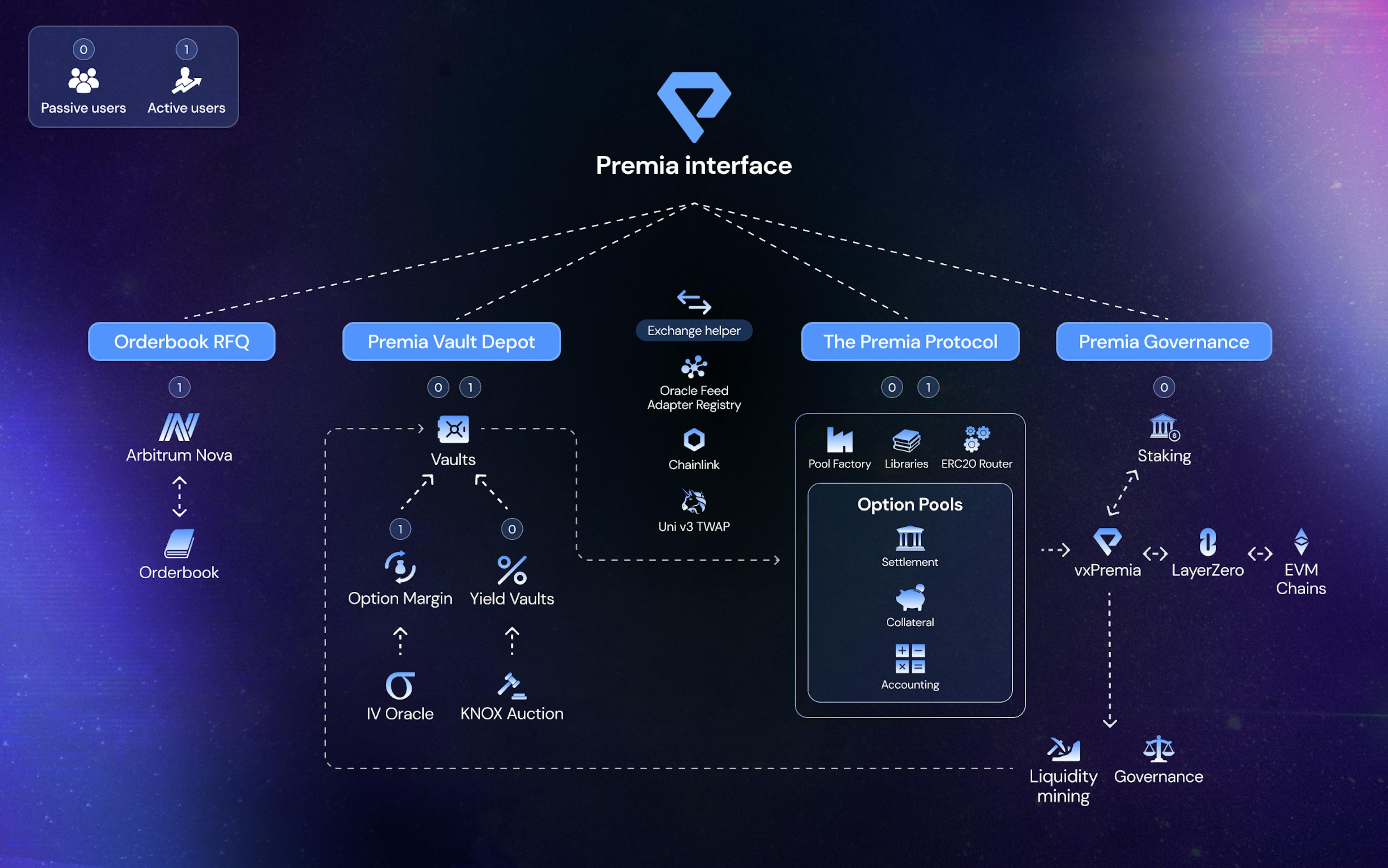The Premia Protocol is an upgradeable suite of smart contracts across multiple liquidity sources to trade options and earn yield.
